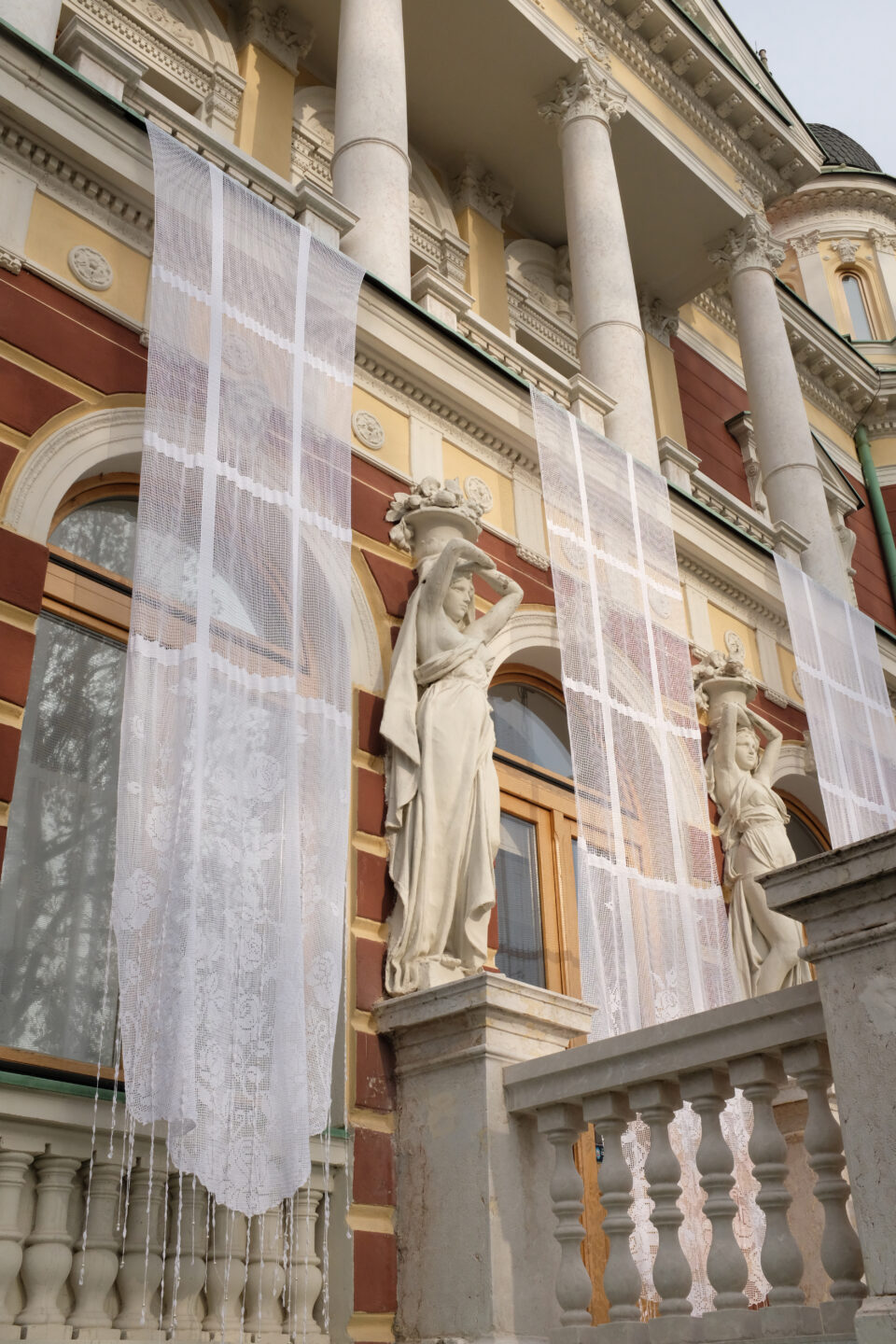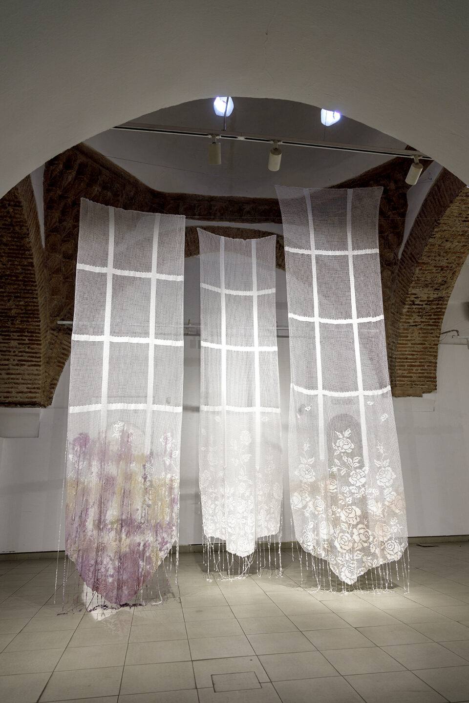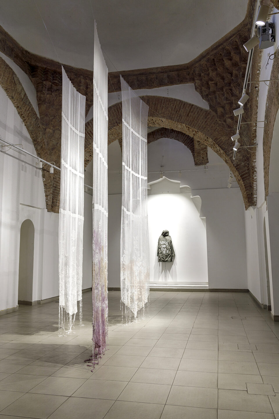Installation views at exhibition We Come With A Bow, Cifte Hammam, Skopje, 2022; photo by Ivan Blazhev